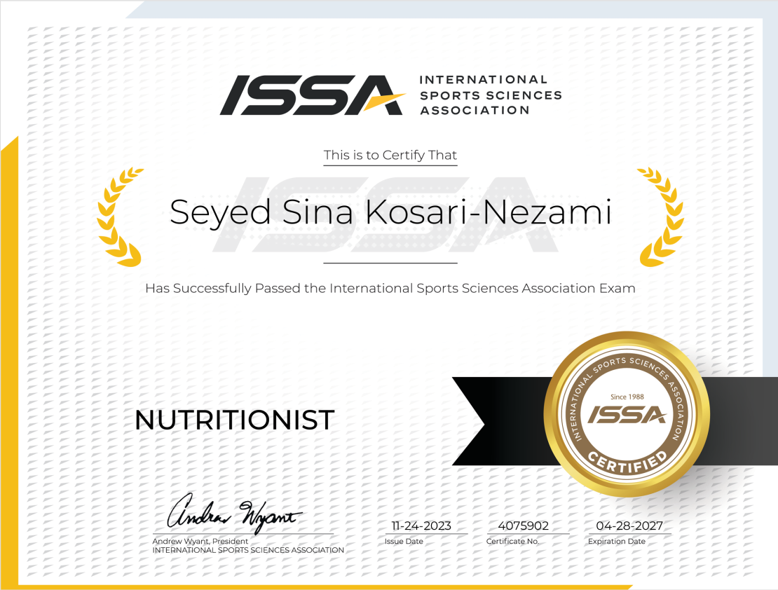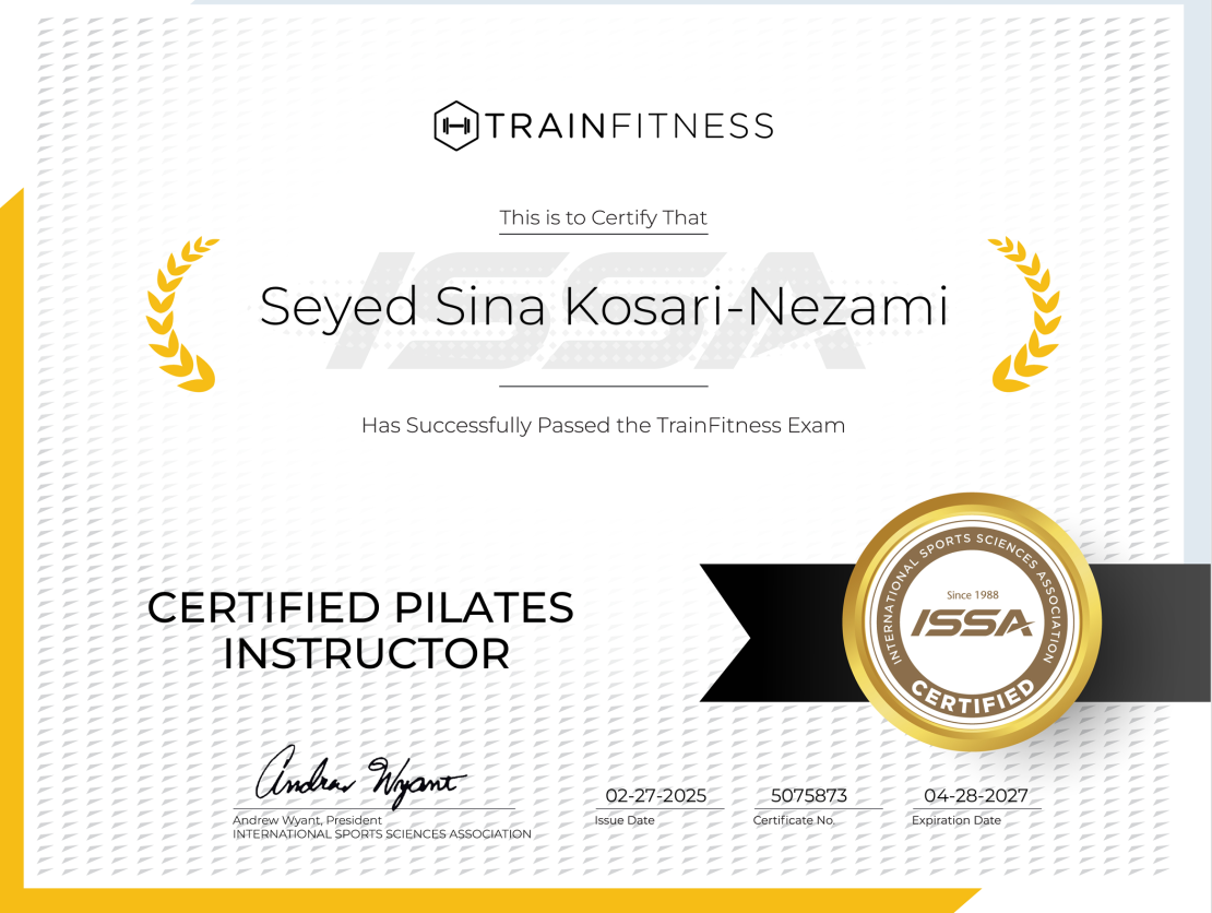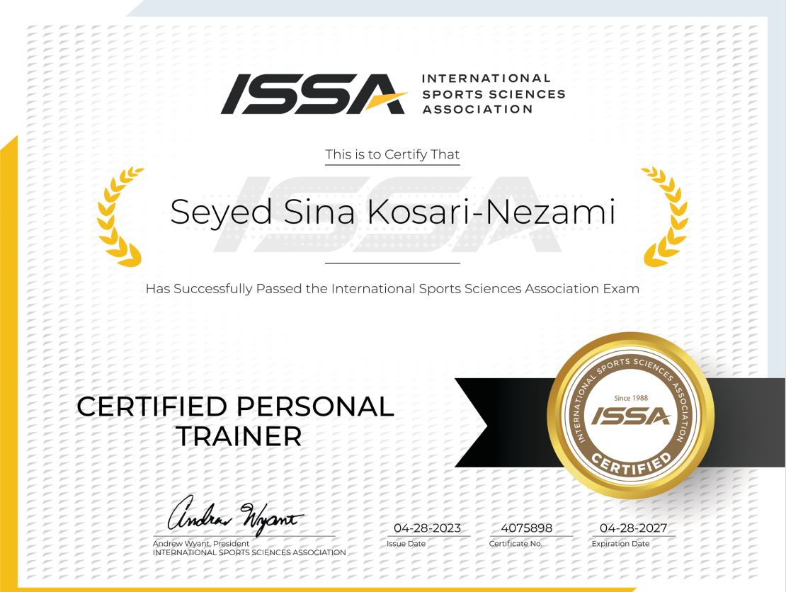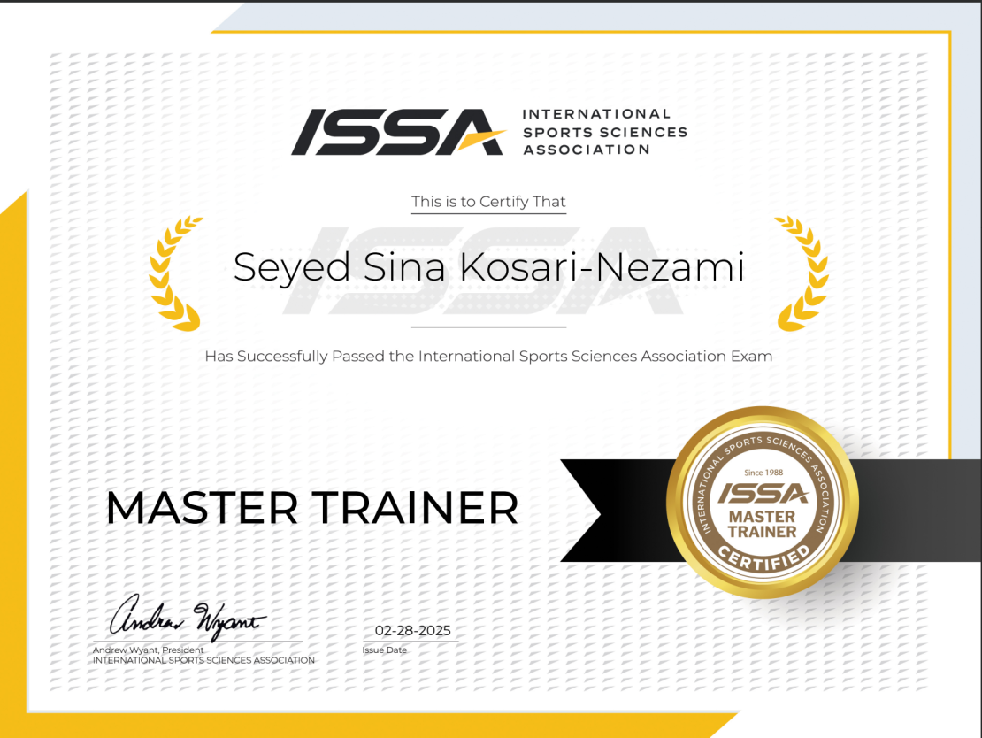 Achieving the ISSA Master Trainer certification represents the pinnacle of fitness expertise, combining knowledge in strength training, corrective exercise, and holistic wellness. This certification reflects my commitment to delivering top-tier training for all clients.